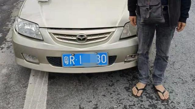 日前,斗門交警大隊正在黃楊大道對過往車輛開展違法整治行動。突然,張警官收到一條報警信息:一輛粵R1××80號牌馬自達小車,正沿黃楊大道東往西方向駛來。幾名交警密切留意過往車輛,幾分鐘后,馬自達小車果然出現在眼前,交警示意車輛靠邊停下。